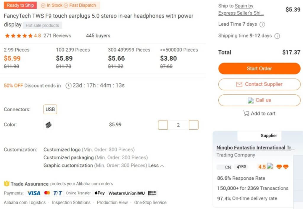 Es recomendable hacer una lista con varios proveedores y luego contactarles directamente con el botón “Contact Supplier”. Cuando les contactes asegúrate de comprobar ciertos parámetros que te ayuden a comprender como sería trabajar con ellos.